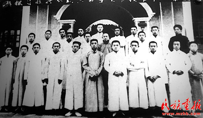 山東省立第一中學(xué)第三期全體學(xué)生會職員合影,前排右四為鄧恩銘