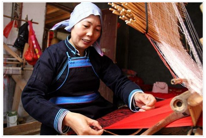 侗錦古稱“綸織”,系侗族女性世代相傳的純手工織物,至今有2000多年歷史。因獨(dú)特的紡織工藝、豐富深刻的文化內(nèi)涵、高雅凝重的品質(zhì)和鮮明的民族風(fēng)格,侗錦成為中國著名織錦之一。位于湘、桂、黔三省(區(qū))交界處的湖南通道侗族自治縣及周邊地區(qū),是侗錦織造技藝的主要分布區(qū)。
