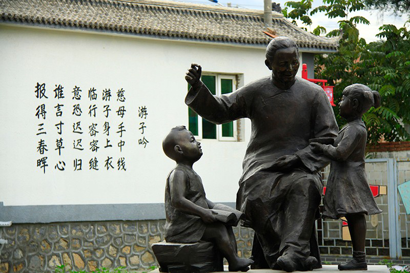 村子的胡同干凈整潔,精心設(shè)計(jì)的院墻上分別繪制著中國古代《二十四孝圖》浮雕、新編《二十四孝圖》彩繪圖、國學(xué)名言名句磚雕以及各種助人為樂兒童圖畫。