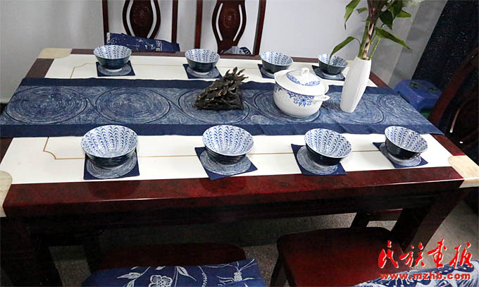 楊文斌老師和她的夫人梁定芳老師都是“非遺”傳承人?,F(xiàn)在他們忙著著書、講學(xué)、開研討會。談起蠟染、談起民族民間工藝,楊文斌老師滔滔不絕:“現(xiàn)在要從三個方面認(rèn)識和研究民族民間工藝:一是從歷史學(xué)、人類學(xué)、民族學(xué)的角度解讀,二是從審美學(xué)、藝術(shù)視覺理念的角度解讀,三是從工藝學(xué)、材料學(xué)、技藝學(xué)的角度解讀?,F(xiàn)在植物染料的加工和染色技藝消失得很快。老祖宗留下的寶貝到我們這代可不能扭曲和斷裂?!?/p>