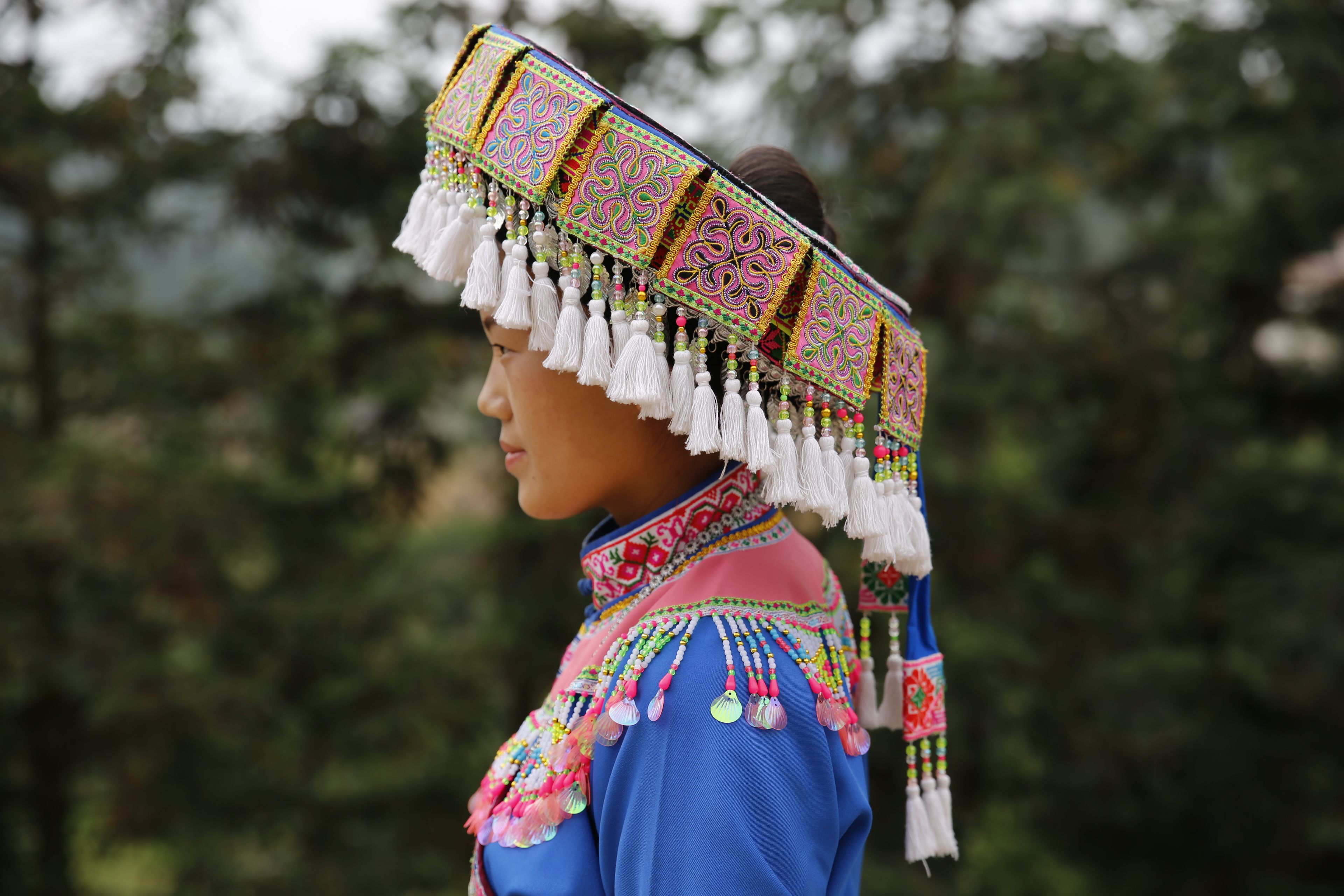 圖片名稱:貴州貴陽苗族女子服飾花帽