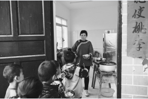 2012年,國家實施義務教育階段學生營養(yǎng)餐計劃,因?qū)W生少,學校沒有配備專門的食堂人員,吳浪就讓妻子回鄉(xiāng)義務給孩子們煮飯,直至2015年底,楊勝云才拿到每月1200元的工資。