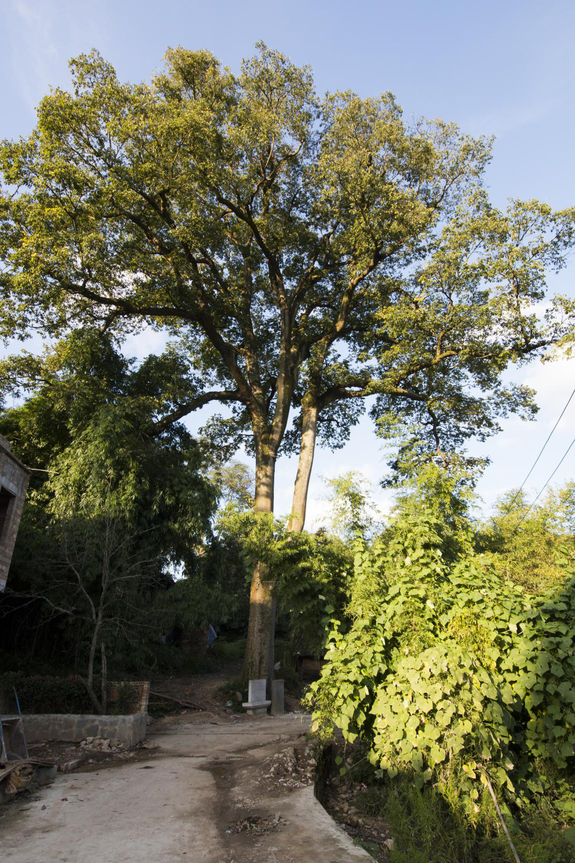 批林村作為典型的少數(shù)民族村寨,較多的保留了民族文化。 村寨文化較為重要的一項(xiàng)是,信仰寄托。信仰寄托指的是村民將對(duì)于天地、先祖、神鬼媒介選擇為某一特定的事物。批林村的古樹,正是這樣的代表。批林村的古樹,樹干筆直,樹皮堅(jiān)硬粗糙,樹干上已有苔綠攀附。時(shí)光如梭,滄海桑田,批林村的古樹依舊在迎風(fēng)臨雨,昂然挺立。依舊作為批林村人的信仰寄托。