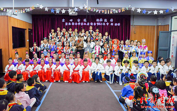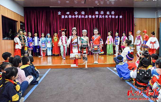同一天下午,一場精彩的T臺秀在上海市閔行區(qū)梅隴鎮(zhèn)弘梅小學(xué)上演。小學(xué)生們身著民族服裝亮相,動(dòng)感的音樂、精彩的表演,將“民族團(tuán)結(jié)一家親”的理念演繹得生動(dòng)活潑。學(xué)校布置的民族文化墻上,展示了我國56個(gè)民族的風(fēng)土人情,營造了多姿多彩的民族文化氛圍,讓民族特色文化陪伴在學(xué)生身邊。