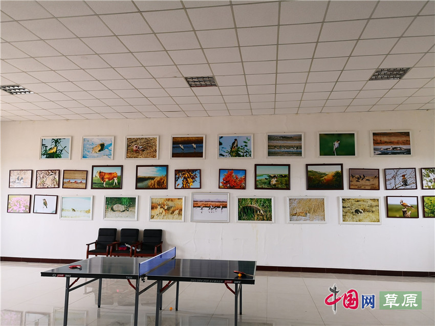 薩如拉圖雅嘎查農(nóng)牧民培訓基地展廳,墻上掛滿了廷·巴特爾牧場野生動植物攝影作品