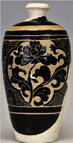 黑釉剔刻牡丹花紋經(jīng)瓶