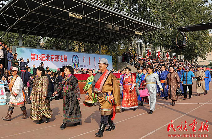 “那達慕”蒙古語意為娛樂、聚會,是蒙古族歷史悠久的傳統(tǒng)節(jié)日,也是草原人民歡慶聚會、集中展示草原文明和民俗風情的盛會。北京那達慕始于1981年,在烏蘭夫等老一輩革命家的支持下,由在北京的部分蒙古族干部、師生自發(fā)組織,把草原上的那達慕搬到了大城市里。2015年,經(jīng)組委會協(xié)商,將“在京蒙古族那達慕大會”更名為“北京那達慕”,并加入了包商銀行、北京通遼企業(yè)商會等成員單位,意味著平臺更大,包容性更廣,影響力更強。近40年來,北京那達慕已經(jīng)成為首都的民族節(jié)日品牌和都市文化發(fā)展的新模式,為世人展示了游牧文化的獨特魅力。北京那達慕的影響力越來越大,是民族文化傳承的新體現(xiàn),是民族團結(jié)的新內(nèi)容,更是黨和國家民族政策的生動化展示。