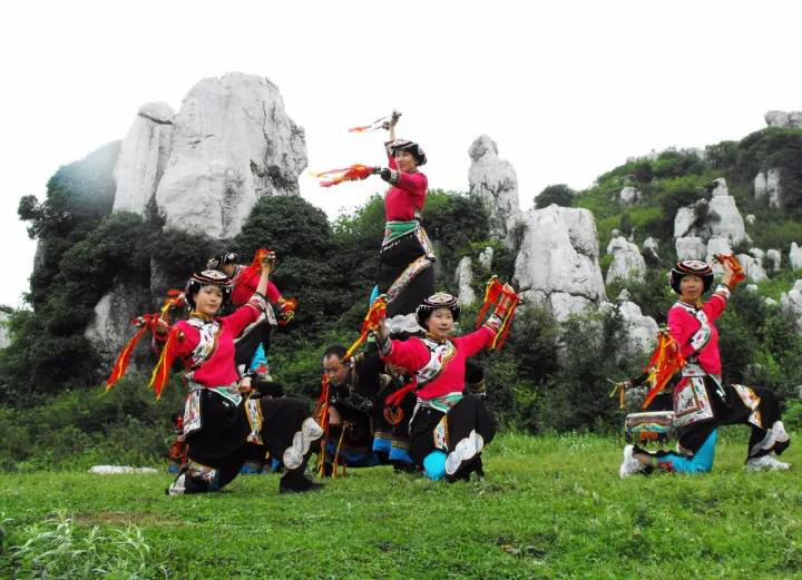“鈴鐺舞”主要流傳在烏蒙山區(qū)的彝族聚居區(qū)。彝語(yǔ)稱(chēng)“懇合唄”?!皯┖稀保讣漓攵Y儀中唱經(jīng)文的歌,“唄”即跳的意思,又稱(chēng)“跳腳”、“抄子舞”。合起來(lái)就是通過(guò)舞蹈表演的形式加上歌師的訴唱來(lái)祭奠死者的意思,是彝族先民在祭祀教化活動(dòng)時(shí)按倫理輩分和長(zhǎng)次舉行高歌創(chuàng)業(yè)公德的騎馬戰(zhàn)狀舞蹈。