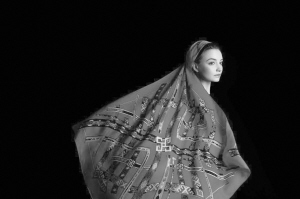星空密碼絲巾上的紋樣圖形是和上古時代的文明聯(lián)系在一起的。傳說中的“洛書”即“九宮圖”的原型,就保留在古老的苗繡服裝上。中國造型文明的起始源于星相學的認知。關于這些傳說,在古老的苗繡中找到了印證與答案。設計沿用古老繡片上保留下來的這些神秘符號,通過再演繹,讓古老的智慧穿越時空,熠熠生輝。