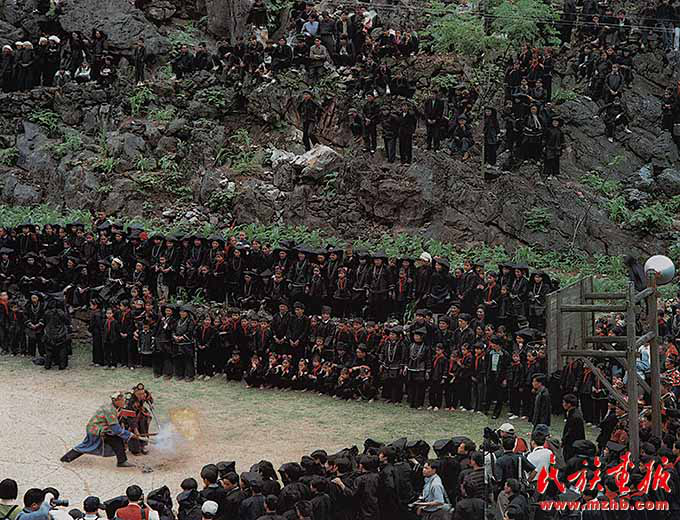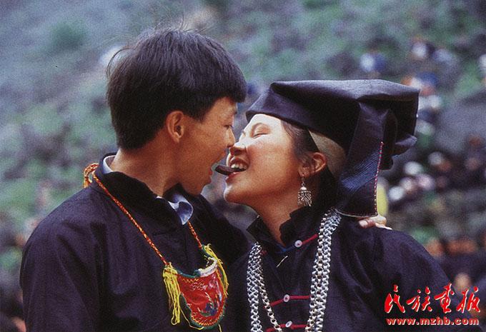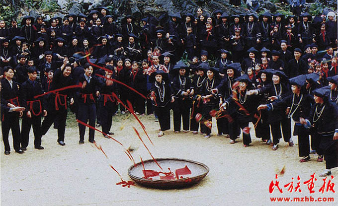 黑衣壯青年男女的戀愛(ài)熱情浪漫,一個(gè)個(gè)扔向簸箕的香包和紅帶子,不久就會(huì)連接兩顆年輕的心,引出一段醉心動(dòng)人的愛(ài)情故事