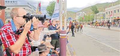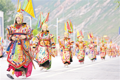 2017年7月24日下午,一場名為“瀟灑的康巴人”玉樹風情巡游在玉樹藏族自治州州府玉樹市街頭上演。來自玉樹州一市五縣的康巴藏族兒女或馭駿馬、或盛裝、或歌舞,以行走巡游的方式展示當?shù)鬲毦咛厣拿褡迕袼孜幕?。各縣巡游隊伍從感恩廣場出發(fā),途徑結(jié)古大道、民主路,最終到達玉樹軍分區(qū),沿途圍滿了觀看的群眾和游客,據(jù)悉,此次巡演在玉樹州尚屬首次。