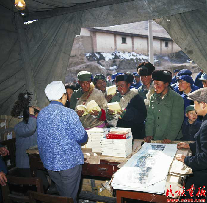 1978年5月,《光明日報》發(fā)表的特約評論員文章《實踐是檢驗真理的唯一標(biāo)準(zhǔn)》掀起了席卷中國的真理標(biāo)準(zhǔn)大討論。1978年12月18日至22日,黨的十一屆三中全會在北京舉行。全會作出了把黨和國家的工作重點轉(zhuǎn)移到經(jīng)濟建設(shè)上來、實行改革開放的歷史性決策,實現(xiàn)了新中國成立以來黨的歷史上具有深遠(yuǎn)意義的偉大轉(zhuǎn)折。同年11月,青海省委宣傳部召開大會,為在“文革”中被打成“大毒草”的藏族史詩《格薩爾》徹底平反。圖為藏族群眾喜購《格薩爾王傳》(中國民族圖片庫資料)
