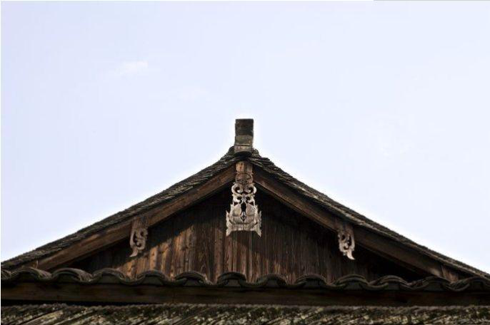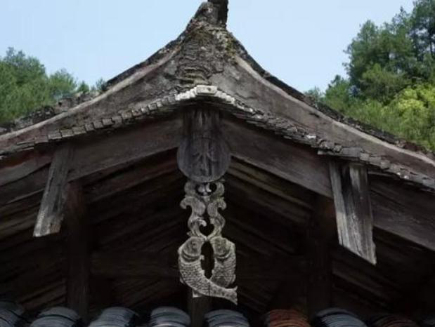 隨著時(shí)間流轉(zhuǎn),懸魚(yú)在匠人時(shí)代里閃轉(zhuǎn)騰挪,歷經(jīng)了由簡(jiǎn)到繁的造型征途,也從功能構(gòu)件升華為裝飾構(gòu)件。同舊時(shí)的其他建筑構(gòu)件一樣,懸魚(yú)在實(shí)際功用與藝術(shù)創(chuàng)造間轉(zhuǎn)徙。因此,它最先考慮了對(duì)木結(jié)構(gòu)的保護(hù),之后才生出裝飾作用等枝蔓。懸魚(yú)覆蓋在博風(fēng)板合角處的罅隙位置,不僅保護(hù)了合角處不受雨雪侵襲,同時(shí)可以美化接縫。懸掛后,也從結(jié)構(gòu)上起到了穩(wěn)定博風(fēng)板的作用,同時(shí)還庇護(hù)了檁條端頭,有效地防止了木制建筑過(guò)早斑駁。時(shí)至今日,懸魚(yú)已然成為傳統(tǒng)建筑中結(jié)構(gòu)性與裝飾性完美融合的一種構(gòu)件,更是祖先智慧的一種體現(xiàn)。