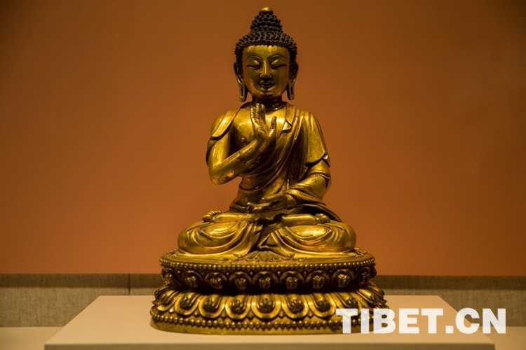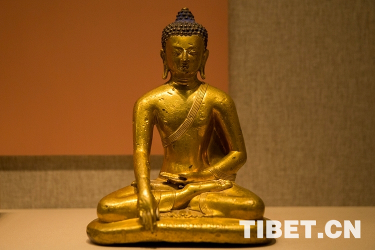 圖為正統(tǒng)款銅鎏金釋迦牟尼像,該像具有典型的中原漢地風(fēng)格。攝影:姚浩然