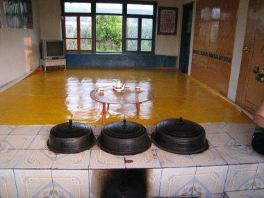朝鮮族傳統(tǒng)民居建筑主要采用燒炕的采暖方式。一般有多大的屋子,就有多大的炕,這點(diǎn)與東北地區(qū)的漢族與滿(mǎn)族類(lèi)似。一般在早上燒兩灶就可以維持一天,冬天非常溫暖,朝鮮族人們可以在炕上進(jìn)行任何活動(dòng)。