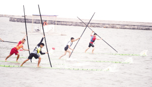 獨(dú)竹漂比賽是直道競(jìng)速項(xiàng)目,運(yùn)動(dòng)員站在竹漂上,利用手中的竹竿劃水前進(jìn),以抵達(dá)終點(diǎn)的先后次序決定名次。本屆獨(dú)竹漂比賽分為男子直道競(jìng)速和女子直道競(jìng)速兩大項(xiàng),設(shè)有60米、100米、200米距離的小項(xiàng),有13支隊(duì)伍參加。其中,河南隊(duì)為首次參加。