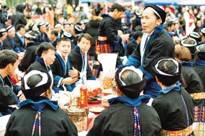 每逢重要節(jié)日,白褲瑤群眾都有舉辦長(zhǎng)席宴的習(xí)俗。以前,芭蕉葉當(dāng)作盤(pán)子,芭芒干折成筷子,一個(gè)飯團(tuán)、一塊牛肉,再加一碗酒,就是長(zhǎng)席宴的全部?,F(xiàn)在改變了很多,但不變的是白褲瑤自然、和諧、平等的美德。2019年2月拍攝。