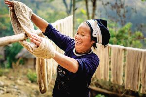 白褲瑤婦女紡紗織布做衣,新買(mǎi)的棉紗要經(jīng)過(guò)蒸煮、漂洗、涼曬才可織布,而年輕一代的白褲瑤婦女大多直接到市場(chǎng)上買(mǎi)白布。2007年10月拍攝。