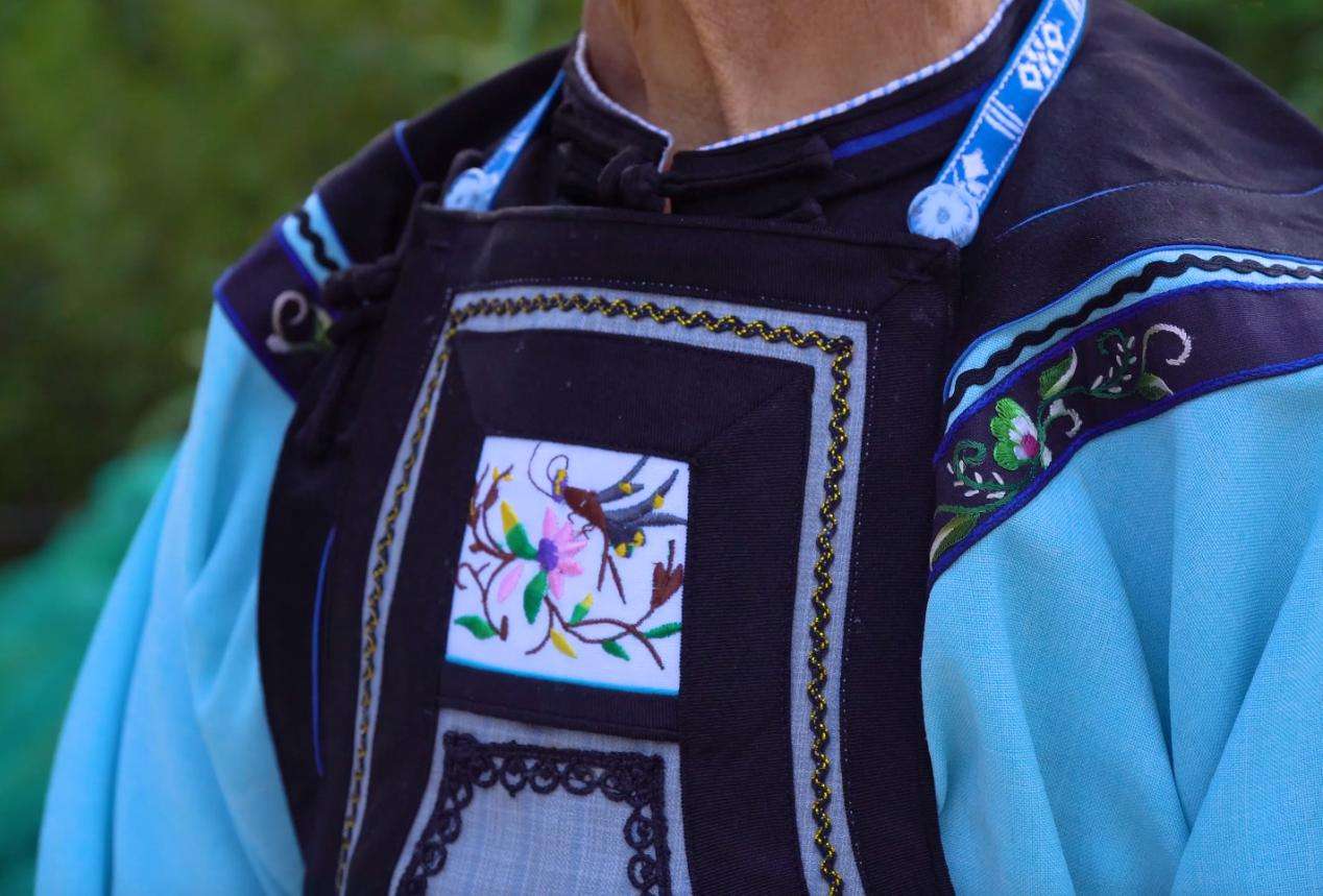 傳統(tǒng)服飾是由布依族傳統(tǒng)工藝制作而成,其上衣以藍(lán)色打底的斜襟衣和白色打底的圍腰為主,上衣對襟處繡有花草圖案作為裝飾,圍腰上部也繡有花草圖案作為描邊。下身則以黑色長褲和灰色長褲為主,衣飾上所有的雕花刺繡圖案全部出自之手。多從市場上購買。其上身對襟處和圍腰上部也繡有花紋圖案,但是這些花紋圖案則是現(xiàn)代機器之功,下身以黑色打底的長褲為主,在褲腳處繡有花草圖案,上板村布依族女性們還有一個習(xí)慣,就是不管是穿戴傳統(tǒng)服飾還是現(xiàn)代服飾都會戴有黑色圓帽?! ?/p>