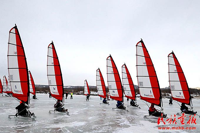2020年1月2至3日,東極船奇·全國冰上帆船公開賽在黑龍江省撫遠市濱江公園黑龍江水域舉辦。來自全國8個城市的帆船愛好者以及撫遠當?shù)氐纳习倜罕妳⒓恿舜舜伪荣悺?/p>