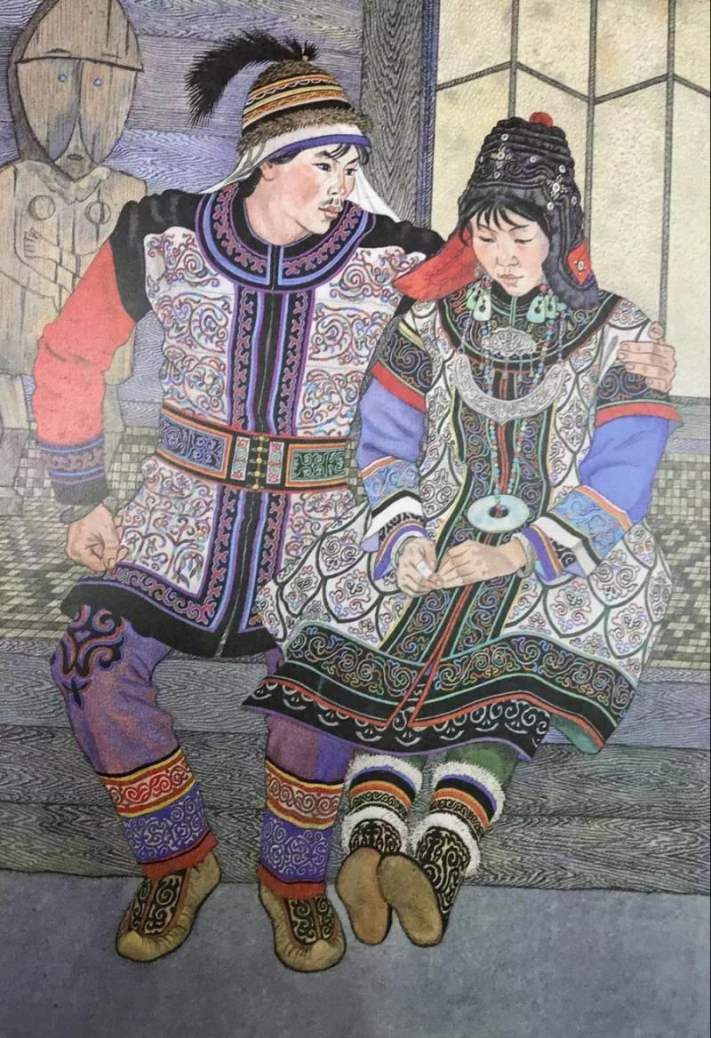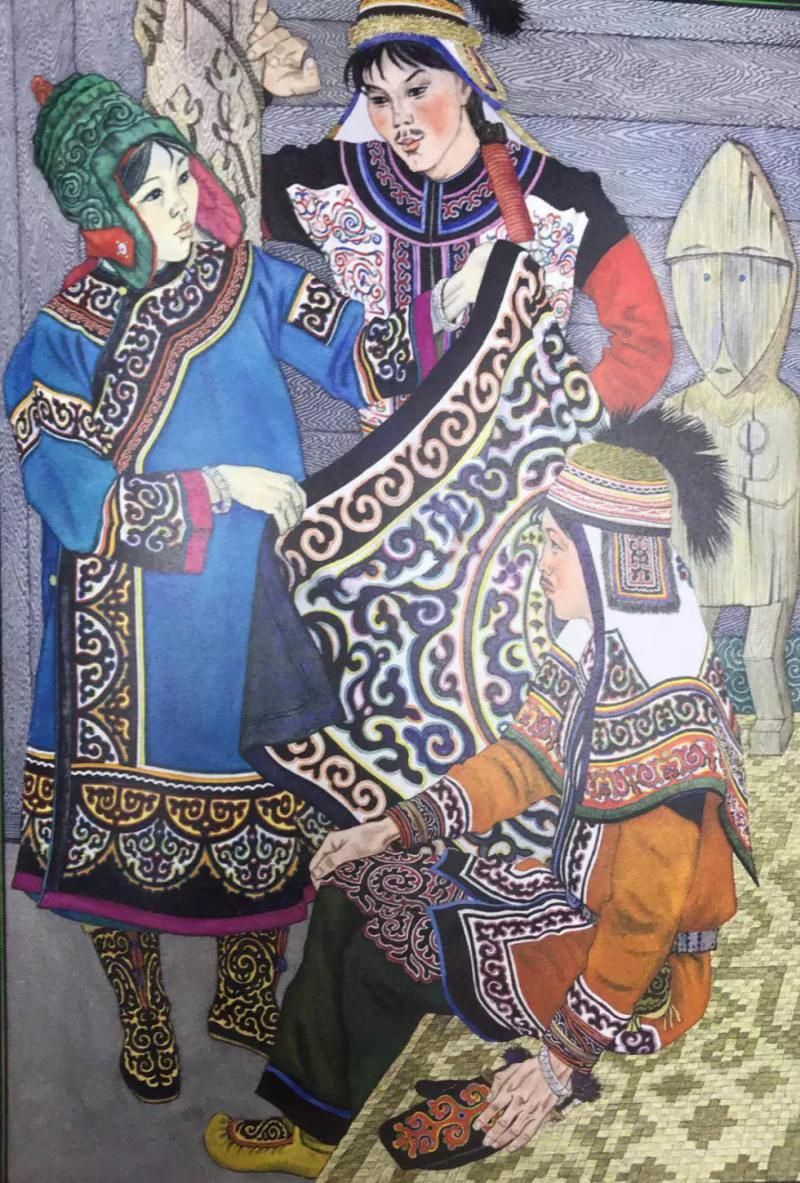 那乃族的插畫,有的用細(xì)膩的繪畫語言真實(shí)再現(xiàn)了那乃族的生活場景,有的用生動形象的裝飾語言表現(xiàn)了那乃族的傳說故事。