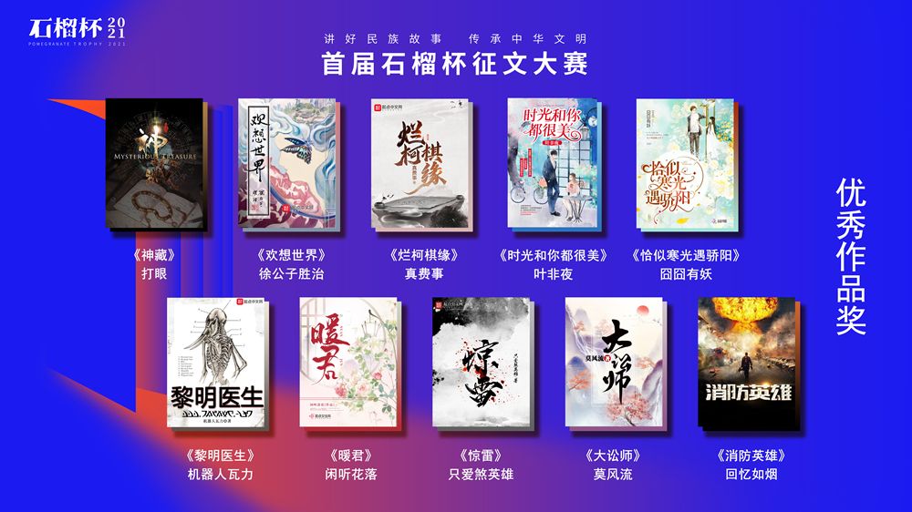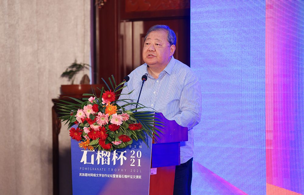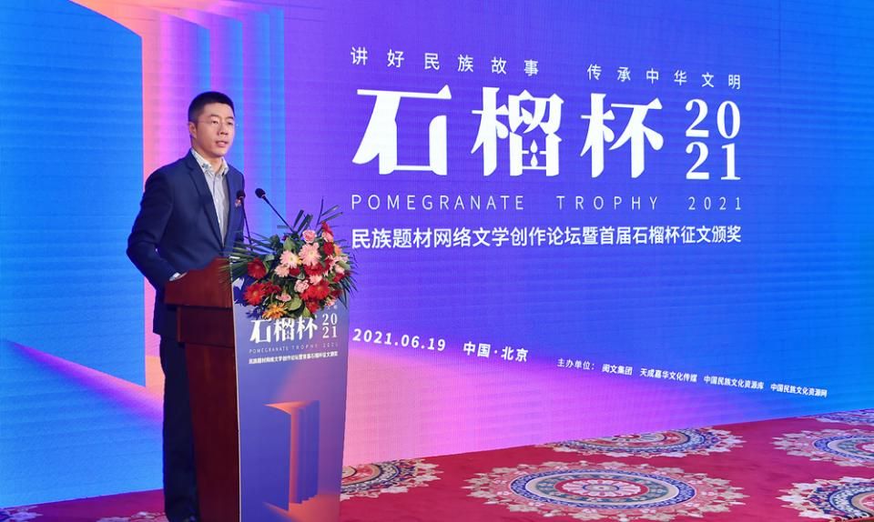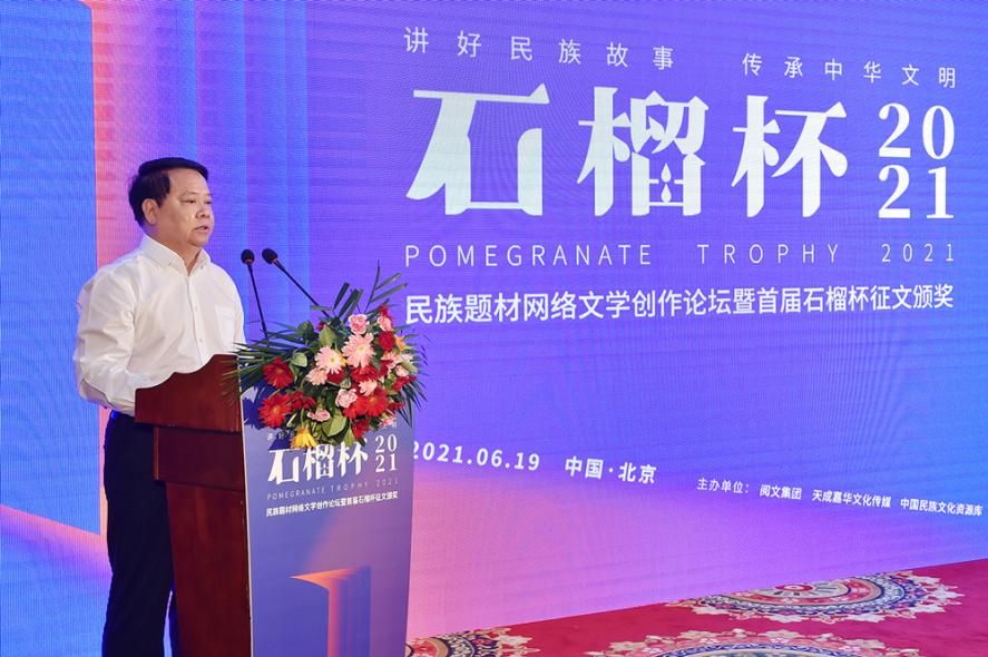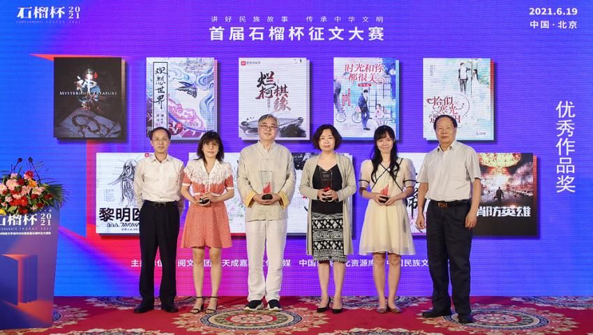 6月19日,民族題材網絡文學創(chuàng)作論壇暨首屆石榴杯征文大賽頒獎典禮在京舉行。作為國家民委主辦的“中華民族全家?!毕盗谢顒又?,首屆石榴杯征文大賽得到了國家民委文化宣傳司和中國少數民族文化藝術促進會的指導與支持,由閱文集團聯合天成嘉華文化傳媒、中國民族文化資源庫、中國民族文化資源網共同舉辦。本屆大賽以“講好民族故事 ,傳承中華文明”為主題,涌現出眾多弘揚民族精神、表達文化自信、傳播正能量的作品。經過專家推薦及嚴格評審,《草原有座蒙古包》、《走西口之天山行》、《彩云微光》等三部作品獲“最具民族風采獎”,《神藏》、《歡想世界》、《爛柯棋緣》、《時光和你都很美》、《恰似寒光遇驕陽》、《黎明醫(yī)生》、《暖君》、《驚雷》、《大訟師》、《消防英雄》等十部作品獲“優(yōu)秀作品獎”。所有獲獎作品都將收錄入中國民族文化資源庫。中國作家協(xié)會副主席、書記處書記吉狄馬加表示,本屆石榴杯大賽是在黨和國家長期以來堅持的對民族文化、少數民族作家創(chuàng)作和民族題材創(chuàng)作的大力扶持下,依托網絡文學平臺,將文學作品與影視作品改編、游戲、動漫產品制作結合起來,探索的一條發(fā)展民族文化的新路,具有開創(chuàng)意義。