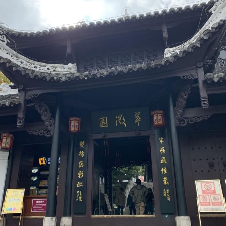第一部分是石牌坊、浮玉橋和涵碧亭。漢白玉石牌坊上書(shū)“城南勝跡”四個(gè)大字,立柱的“抱鼓石”為八尊石獅子,石獅尾朝上頭朝下,活靈活現(xiàn),富有生氣。穿過(guò)石牌坊走上浮玉橋,橋體連接南北兩岸,其名來(lái)源于其質(zhì)地,由貴州特產(chǎn)白棉石打造,從遠(yuǎn)處看猶如一條玉帶浮在水面。橋上的涵碧亭是古人納涼休息的地方,因橋下有深潭“涵碧潭”而得名,亭子四柱上刻有兩幅對(duì)聯(lián),分別是“水從碧玉環(huán)中出,人在青蓮瓣里行”、“銀漢浮空星過(guò)水,玉虹拖雨雁橫秋”。