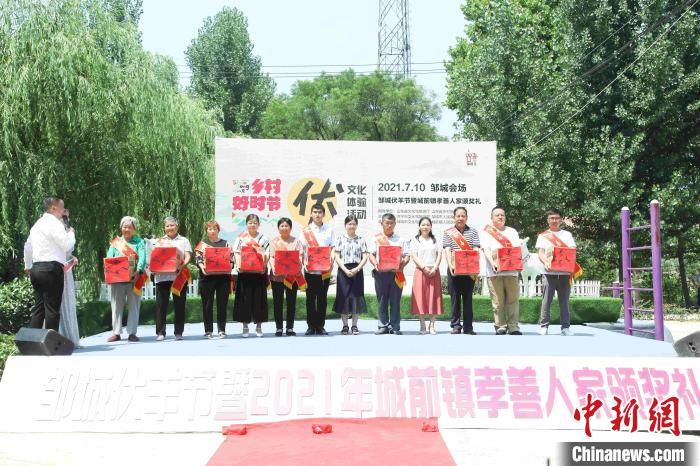 記者10日在現(xiàn)場看到,啟動儀式在傳統(tǒng)舞蹈《祈伏》中拉開序幕,鄒城文化學(xué)者從“善”字字形發(fā)展變化入手,現(xiàn)場說文解字,解讀伏文化與孝善文化之間的文化淵源?!靶⑸蒲驕纭睂⒎蚬?jié)推向高潮,當(dāng)?shù)卮迩f免費(fèi)請“孝善人家”代表等“喝伏羊”。