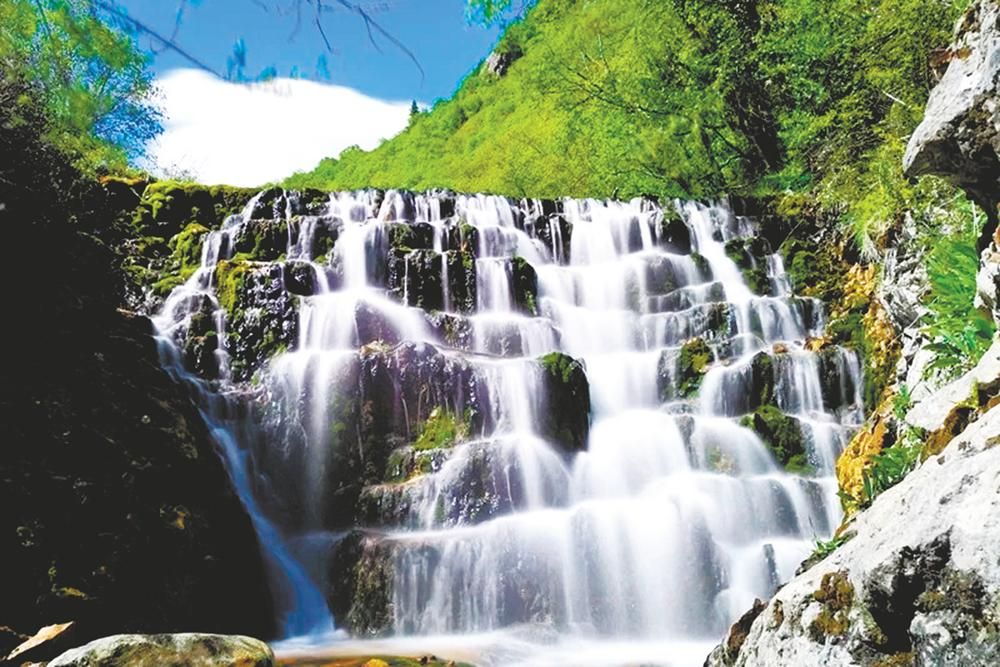 在卡索峽景區(qū),群山涌翠,古木參天,花木繁茂,芳香馥郁,清脆的鳥鳴不絕于耳,野兔、馬鹿、馬雞等野生動物不時出沒于河畔叢林,野趣十足。