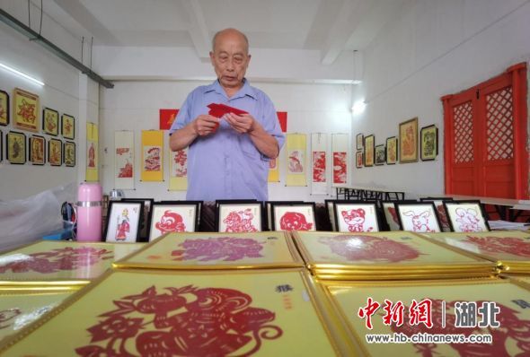 在中國共產黨成立100周年之際,棗陽市非物質文化遺產傳承人蔡世吉,以紙、刀、剪等工具,創(chuàng)作出一幅幅精美絕倫的剪紙藝術作品,謳歌黨的豐功偉績,表達對祖國繁榮富強的美好祝愿。