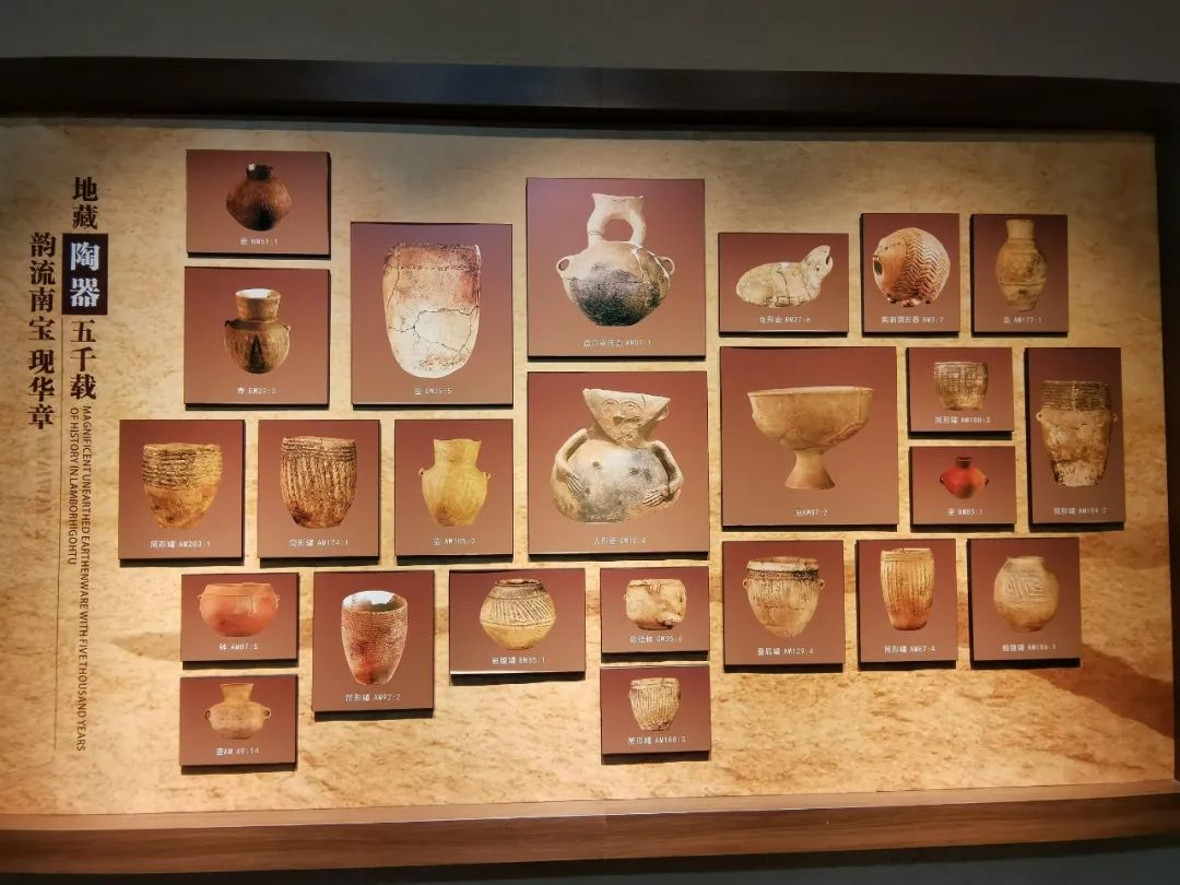 陶韻風(fēng)采;生活穩(wěn)定的南寶先民,在生產(chǎn)之余,加快了對藝術(shù)追求的步伐,接受來自周鄰?fù)谖幕挠绊?,他們開始在日常使用的陶器上面描繪圖案,形成了獨(dú)特的南寶風(fēng)格。雍容華貴的彩陶圖案,紋樣繁復(fù)的劃刻特點(diǎn),宛如一面面飄揚(yáng)在這里的旗幟,引領(lǐng)著南寶先民走出原始泥沼,迎接文明曙光。