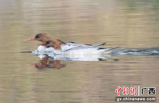 廣西荔浦市荔江流域首次發(fā)現(xiàn)國家一級(jí)保護(hù)動(dòng)物:中華秋沙鴨。張德林 攝