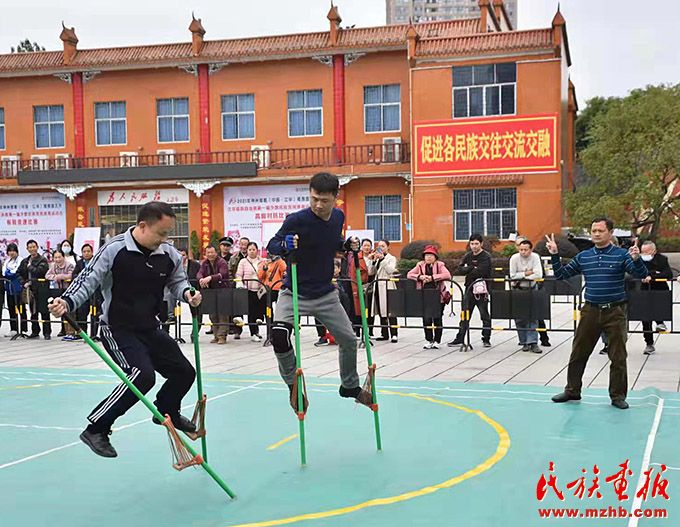 永州市委統(tǒng)戰(zhàn)部副部長、市民宗局局長周建志在開幕式上致辭,運動員和裁判員代表分別進行了宣誓。據(jù)悉,本屆民族運動會會期兩天,共設押加、陀螺、蹴球、高腳對抗、板鞋競速、毽球、射弩等7個競賽項目。