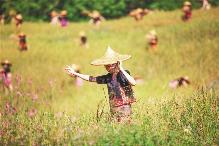 11月21日,在白沙黎族自治縣青松鄉(xiāng)擁處村、青松村等村莊的山坡上、山谷里,放眼望去,在群山疊翠間,漫山遍野都是金黃色的山蘭旱稻,這般豐收的場(chǎng)景尤為賞心悅目。當(dāng)天,2021年白沙“啦奧門”山蘭文化節(jié)在青松鄉(xiāng)擁處村啟幕,活動(dòng)旨在讓更多的人知曉海南黎族山蘭旱稻的農(nóng)耕文化,進(jìn)一步提升“啦奧門”山蘭文化節(jié)民族品牌活動(dòng)的影響力,助力鄉(xiāng)村振興“加速跑”。