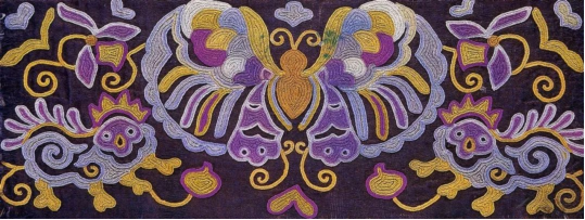 臺(tái)江苗繡的圖畫紋飾豐富,有造型獨(dú)特的飛禽走獸、花鳥魚蟲,還將人與大自然的其他動(dòng)植物在繡片上融為一體,體現(xiàn)了苗族人民對(duì)自然萬(wàn)物的崇拜,同時(shí)也折射出苗族屢經(jīng)遷徙的歷史變遷。