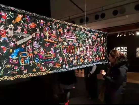 《錦繡臺(tái)江》長(zhǎng)22米、寬0.9米,由臺(tái)江縣100余名繡娘用了一個(gè)多月時(shí)間共同繡制完成,是目前臺(tái)江苗族刺繡中最長(zhǎng)、最精美的作品