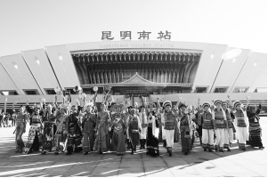 云南探索“高鐵沿線創(chuàng)建聯(lián)盟”等創(chuàng)新做法,全面深入持久開展民族團結進步創(chuàng)建工作。圖為各族群眾在慶祝高鐵開通儀式上載歌載舞。云南省民宗委供圖