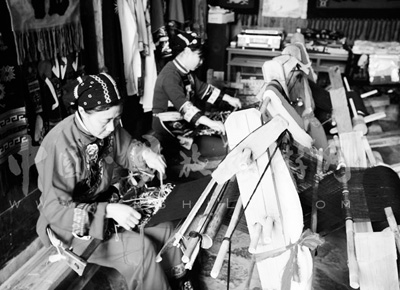 在這些土家女人手上,一架織錦機(jī),就是一個(gè)大千世界,它能真實(shí)或者夸張地織出存在于山上田野的所有物像。雖然她們的文化水平不是很高,卻能創(chuàng)造出一些很抽象的西蘭卡普?qǐng)D案。有時(shí),我更愿意這樣說:西蘭卡普是一種與人俱存的藝術(shù)。
