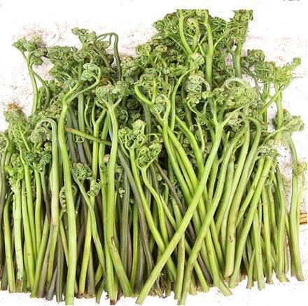 蕨菜又叫拳頭菜、貓爪、龍頭菜,屬于鳳尾蕨科。喜生于淺山區(qū)向陽(yáng)地塊,多分布于稀疏針闊混交林。其食用部分是未展開(kāi)的幼嫩葉芽。維西蕨菜野生在林間、山野、松林內(nèi),是無(wú)任何污染的綠色野菜,不但富含人體需要的多種維生素,還有清腸健胃,舒筋活絡(luò)等功效。蕨菜食用前經(jīng)沸水燙后,再浸入涼水中除去異味,便可食用。經(jīng)處理的蕨菜口感清香滑潤(rùn),再拌以佐料,清涼爽口,是難得的上乘酒菜。還可以炒吃,加工成干菜,做餡、腌漬成罐頭等。