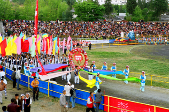 三月街又名“觀音市”,是云南白族盛大的節(jié)日和街期。每年夏歷三月十五至二十日在大理城西的點(diǎn)蒼山腳下舉行。最初它帶有宗教活動(dòng)色彩,后來逐漸變?yōu)橐粋€(gè)盛大的物資交流會(huì)。明清時(shí)期,四川、西藏、江南各省都有商人到此貿(mào)易。它不僅是個(gè)交換場所,還是表演各種舞蹈和賽馬、競技的樂園。中華人民共和國成立后,三月街已發(fā)展成滇西各族人民一年一度繁榮的物資交流和民族體育文藝大會(huì),對(duì)加強(qiáng)民族團(tuán)結(jié)、促進(jìn)民族間的經(jīng)濟(jì)文化交流,起了積極的作用。