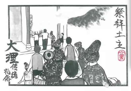 彝族各個(gè)村寨都有土主廟,廟里有的供奉土主南詔王,有的供奉著“觀(guān)音老爹”,這里的彝族信奉的是食葷的男性觀(guān)音老爹。