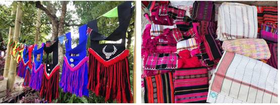 翁嘎科魏明介紹:“佤族男服飾以黑或者與紅、黑白、黑紅為搭配,女服飾裙子是純手工藝以黑白、黑紅為主基調(diào), 頭飾是用銀白色的頭飾進(jìn)行裝飾,裹著一層類似于項(xiàng)鏈一樣的飾品,最原始的頭飾還是用黑布裹起來(lái)的,演變到現(xiàn)在的話還需要做一些裝飾?!?/p>