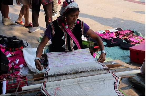 織錦是各民族生活中不可缺的勞作。紡線原料以棉纖維和麻纖維為主。 棉主要是草棉、白棉沙線、黑棉沙線、紅棉沙線,麻主要為苧麻和野生火麻。在織錦的過(guò)程中,婦女端坐在紡車前,凝神專注地操持著手中的活計(jì)。 織一匹布大約需要20天至一個(gè)月左右的時(shí)間。