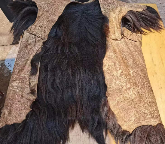 大叔介紹羊皮衣制作并不復(fù)雜,只需要把山羊皮清洗干凈,平整鋪開在墻上自然風(fēng)干,十多天后取下揉搓軟后,用蓑衣針縫合便可。為了讓羊皮結(jié)實(shí)耐用,縫合羊皮的線也是用羊皮制作而成。