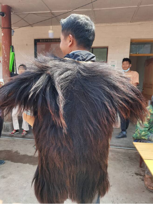 如果說鎮(zhèn)沅的蜘蛛衣和樹皮衣是見證各民族社會(huì)發(fā)展變遷的文物,是陳列在博物館中的“鎮(zhèn)館之寶”。那么在鎮(zhèn)沅農(nóng)村偶爾還能見到的與群眾生產(chǎn)生活密切相關(guān)的羊皮衣則是能穿在身上的“古董”。