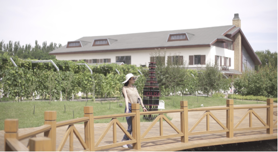 一輛小車,三五成群。離開書法館后,跨過黃河大橋,大約30分鐘左右,我們就來到了位于河對岸的吉奧尼酒莊,去和朋友一起在一片偌大的種植園里拍照、寫生、喂魚。走累了,就進入品酒室,讓導游來為我們講解關于葡萄酒的知識。