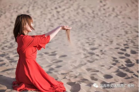 沙漠中一定要拍照,沙漠必配長裙,最好是紅色長裙,裙?飄揚,荒蕪的沙漠是背景,藍天白云是點綴,此時,這浩瀚無垠沙漠地是你的主場。
