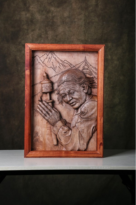 《門神》、《福滿門》這是劍川木雕在繼承傳統(tǒng)基礎(chǔ)上,對傳統(tǒng)的一種大膽嘗試性的發(fā)揚創(chuàng)作。這些作品的特點是,既保留了嫻熟的傳統(tǒng)木雕技藝,只是通過巧妙的組合,在現(xiàn)成的古老大門上雕出“門神”或用舊門框作為木雕作品的邊框,從而產(chǎn)生一種新的意趣,這種創(chuàng)意很適合當下都市的審美要求,也是劍川木雕未來發(fā)展中很值得提倡的新思路。木雕復(fù)制《張勝溫畫卷》