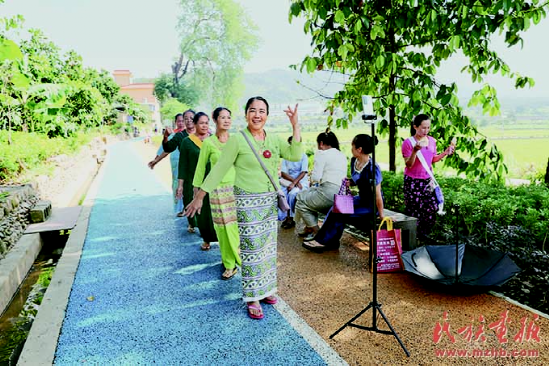 村民在村中廣場(chǎng)跳起歡樂(lè)的舞蹈。