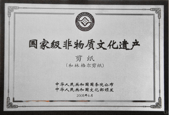 2008年,和林格爾剪紙被國(guó)務(wù)院公布為國(guó)家級(jí)非物質(zhì)文化遺產(chǎn)代表名錄